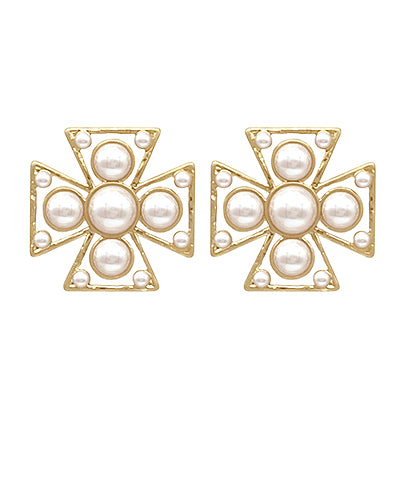 Byzantine Cross & Pearl Earrings