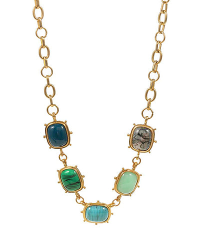 Elevate your accessory game with the Della Linked Stone Choker, showcasing a series of linked stones that create a bold yet elegant silhouette. Perfect for layering or wearing alone, this lightweight choker adds a contemporary edge to any outfit. The versatile design pairs beautifully with both casual and formal looks, making it a must-have addition to your jewelry collection.