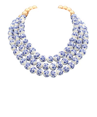 The Elowen Ceramic Flower & Metal Ball Necklace combines delicate ceramic florals with metallic accents for a stylish layered look.