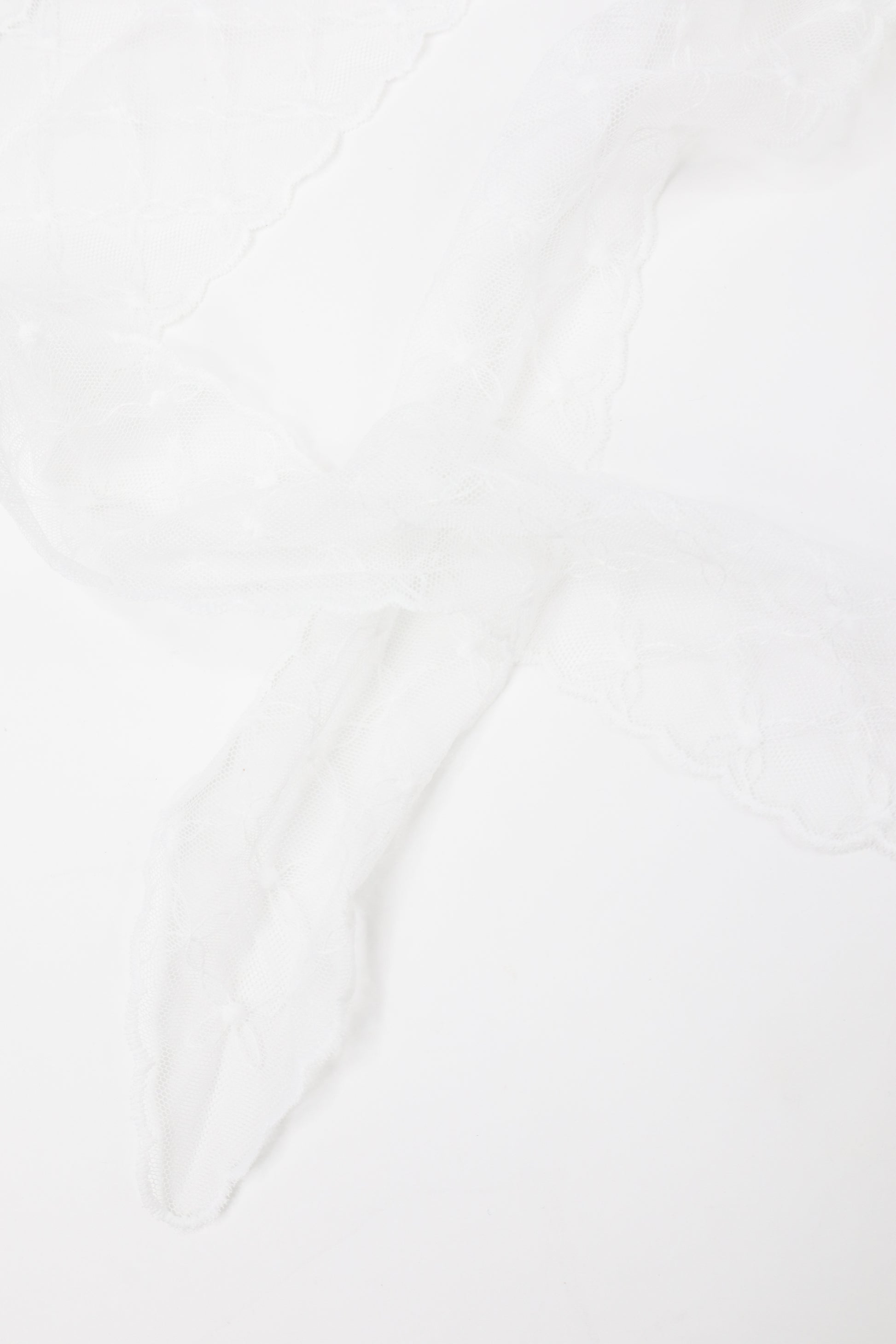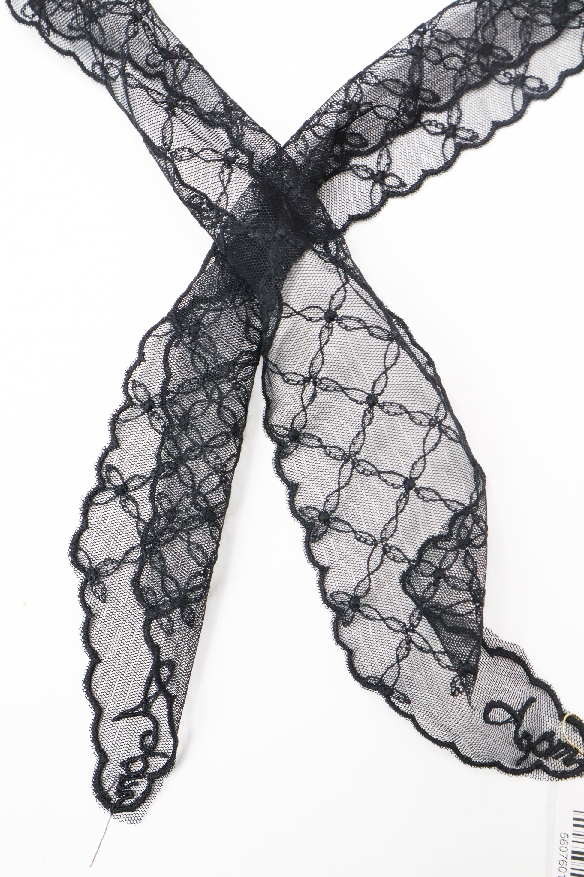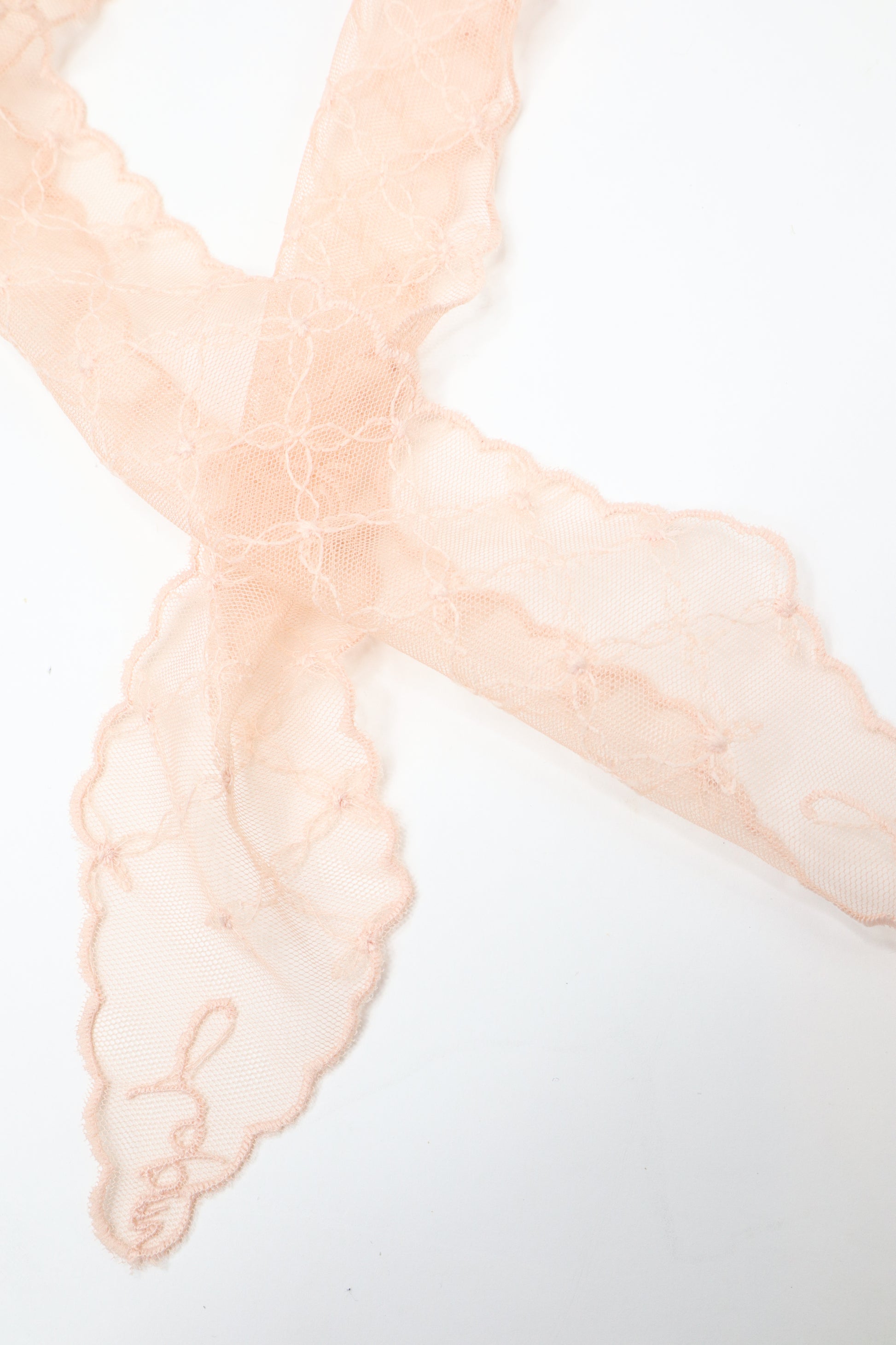 A delicate lace ribbon scarf that adds a romantic, feminine touch to any outfit.
