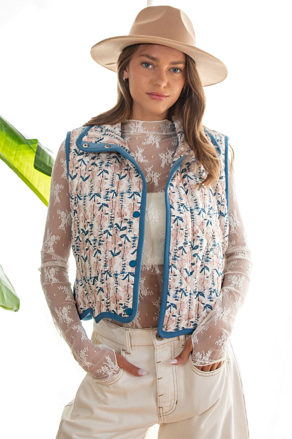 Charming and elevated, this quilted floral vest adds a polished pop of print to any layered look.