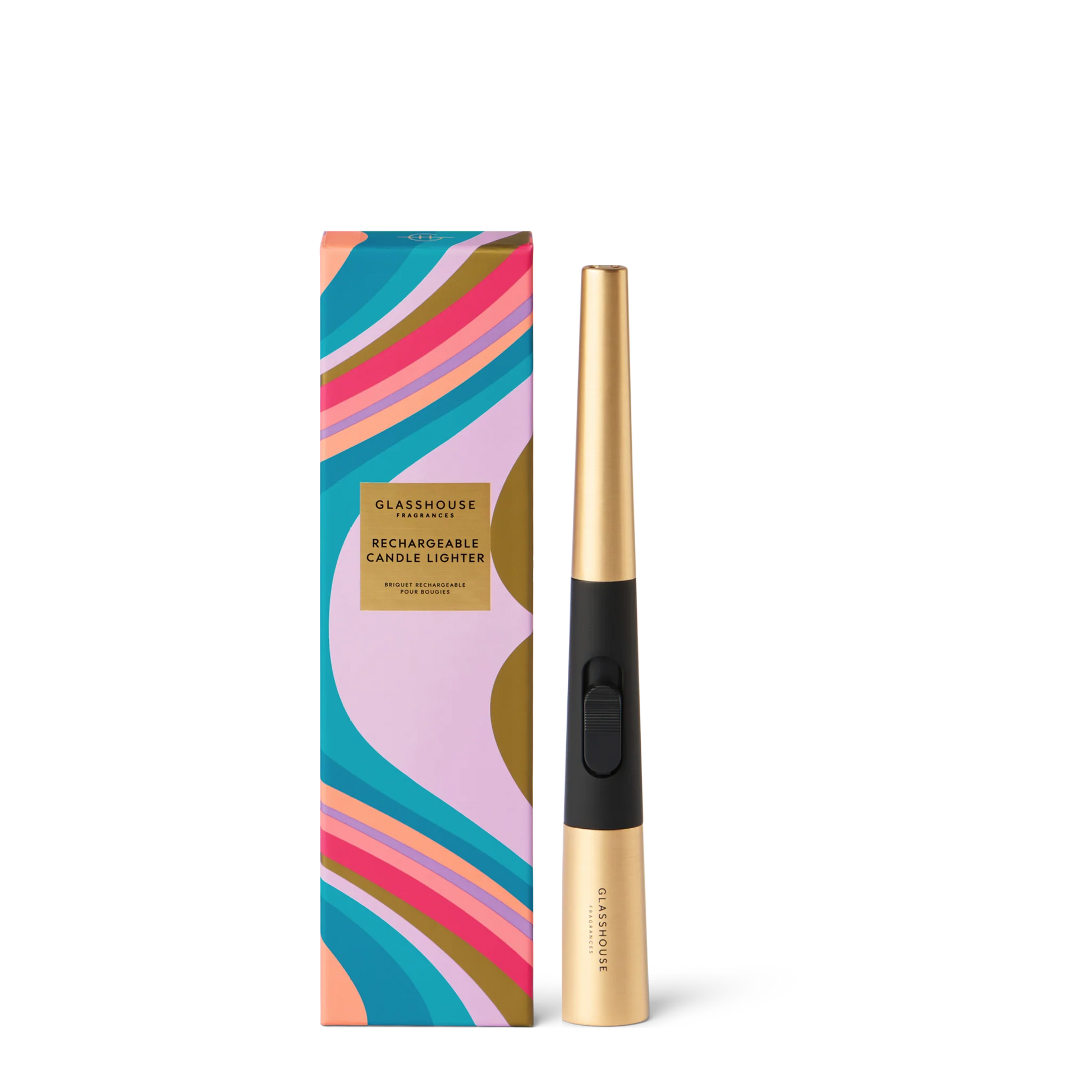 Elevate your candle ritual and ignite effortlessly with the Glasshouse Rechargeable Candle Lighter. Sleek and sustainable, it powers up, replacing disposable lighters. Light up your gatherings, me time and special occasions with magical, scented candle glow you can count on.